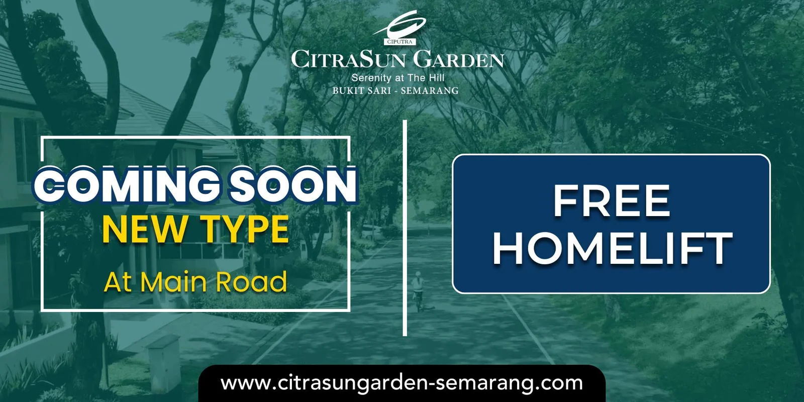 Coming Soon! Akan hadir tipe terbaru di kawasan Mainroad! Dilengkapi dengan Free Homelift untuk kemudahan aktivitas harian dan kenyamanan maksimal! Untuk informasi type baru di CitraSun Garden Semarang selengkapnya tekan button di bawah ini!